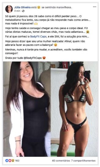 Mais do que uma explicação científica dos poderes do produto, vamos trazer alguns depoimentos de pessoas reais que usaram o suplemento BodyFit Caps antes e depois e vejam resultados reais de emagrecimento.
